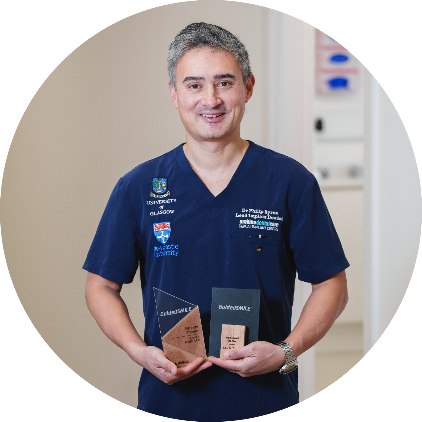 When it comes to dental implants, experience matters. At Erskine Dental Care, our lead implant dentist Dr Philip Byrne has over 20 years’ experience and holds a postgraduate qualification specifically in dental implantology.